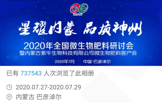 7月27-29日,在這激流涌動的農(nóng)資新時代,由紫牛生物、內(nèi)蒙古肥料協(xié)會聯(lián)合主辦的“2020年全國微生物肥料研討會暨內(nèi)蒙古紫牛生物科技有限公司微生物肥料客戶會”在美麗的塞上江南巴彥淖爾隆重舉行,本次會議盛況線上線下同步進行,線上圖片直播人氣爆棚,累計關(guān)注量超70萬人次。